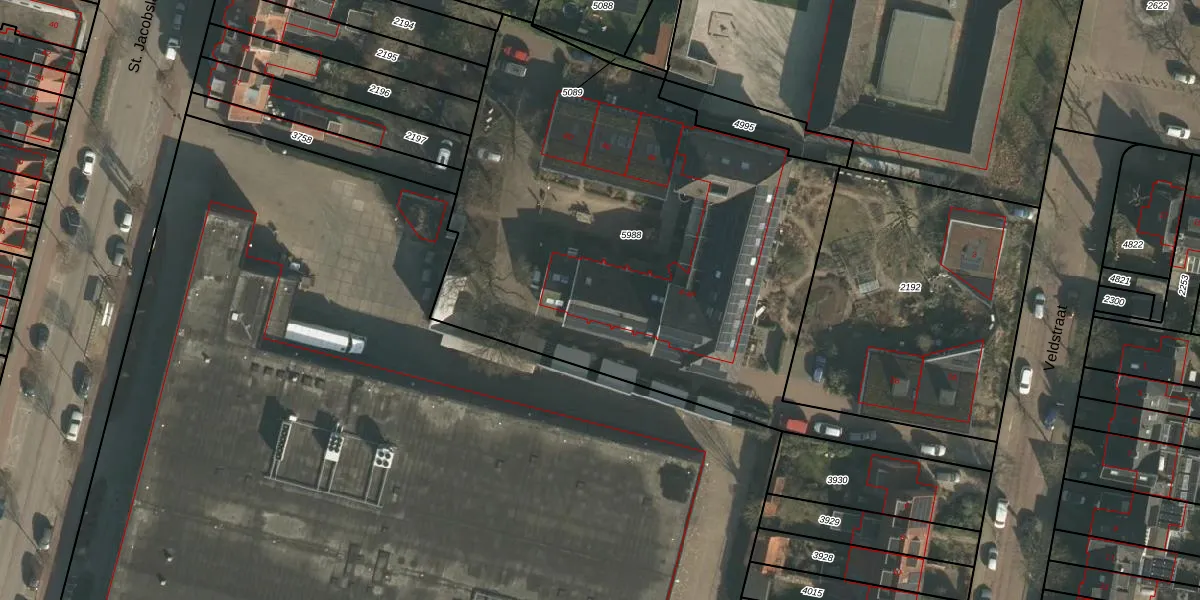 Veldstraat 4-B is gelegen op kadastraal perceel HTT02L5988. Deze kadastrale aanduiding is uniek en wordt gebruikt door het Kadaster om eigendomsrechten en andere zakelijke rechten vast te leggen. Het perceel maakt onderdeel uit van de kadastrale gemeente Hatert.