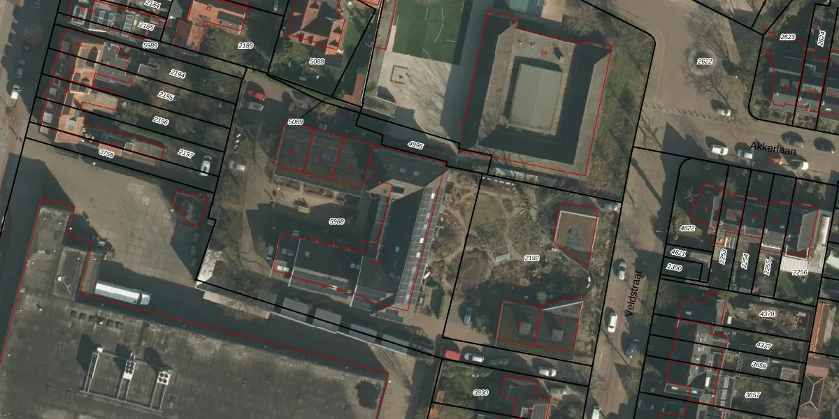 Het perceel waarop Veldstraat 4-H staat heeft een oppervlakte van 3184 m². Dit is een zeer groot perceel. De perceeloppervlakte wordt geregistreerd door het Kadaster. Gedetailleerde informatie over de maten van dit perceel kunt u vinden in het rapport Kadastrale kaart met maatvoering van Veldstraat 4-H.