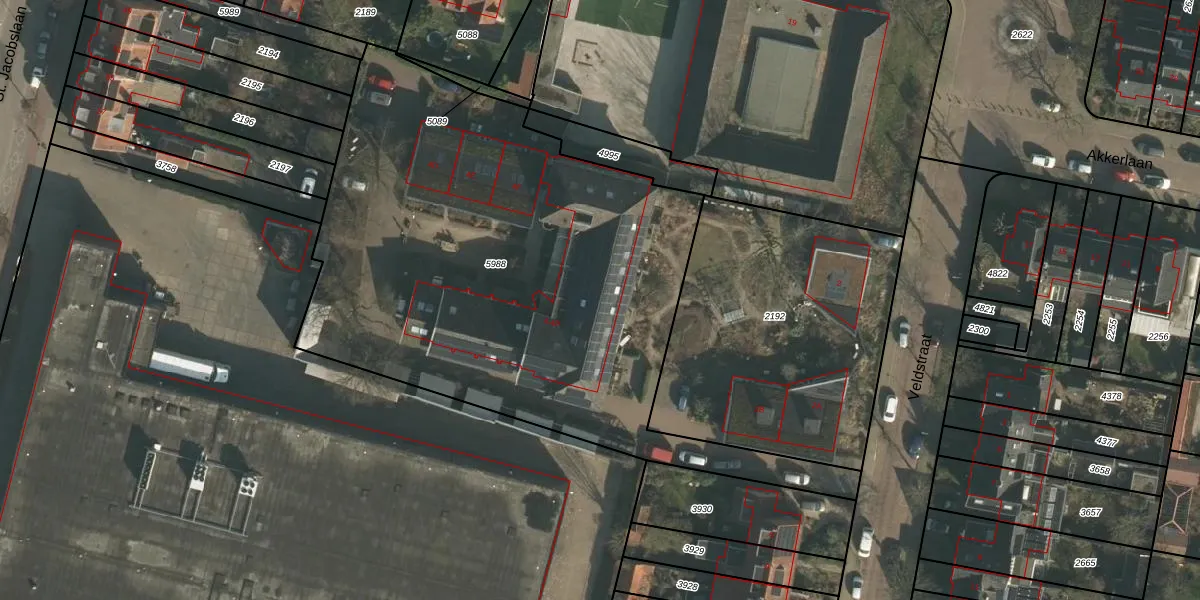 Het perceel waarop Veldstraat 4-J staat heeft een oppervlakte van 3184 m². Dit is een zeer groot perceel. De perceeloppervlakte wordt geregistreerd door het Kadaster. Gedetailleerde informatie over de maten van dit perceel kunt u vinden in het rapport Kadastrale kaart met maatvoering van Veldstraat 4-J.