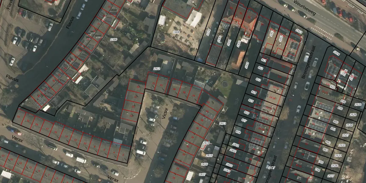 Victor 46 is gelegen op kadastraal perceel NBH00A2412. Deze kadastrale aanduiding is uniek en wordt gebruikt door het Kadaster om eigendomsrechten en andere zakelijke rechten vast te leggen. Het perceel maakt onderdeel uit van de kadastrale gemeente Neerbosch.