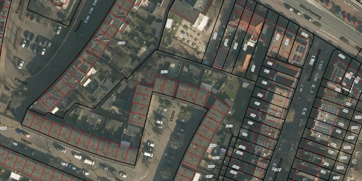 Victor 48 is gelegen op kadastraal perceel NBH00A2412. Deze kadastrale aanduiding is uniek en wordt gebruikt door het Kadaster om eigendomsrechten en andere zakelijke rechten vast te leggen. Het perceel maakt onderdeel uit van de kadastrale gemeente Neerbosch.