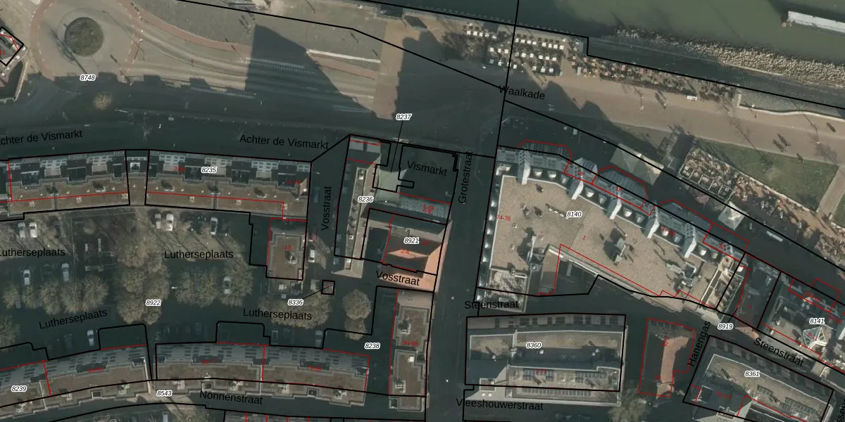 Vismarkt 11 is gelegen op kadastraal perceel NMG00C8236. Deze kadastrale aanduiding is uniek en wordt gebruikt door het Kadaster om eigendomsrechten en andere zakelijke rechten vast te leggen. Het perceel maakt onderdeel uit van de kadastrale gemeente Nijmegen.