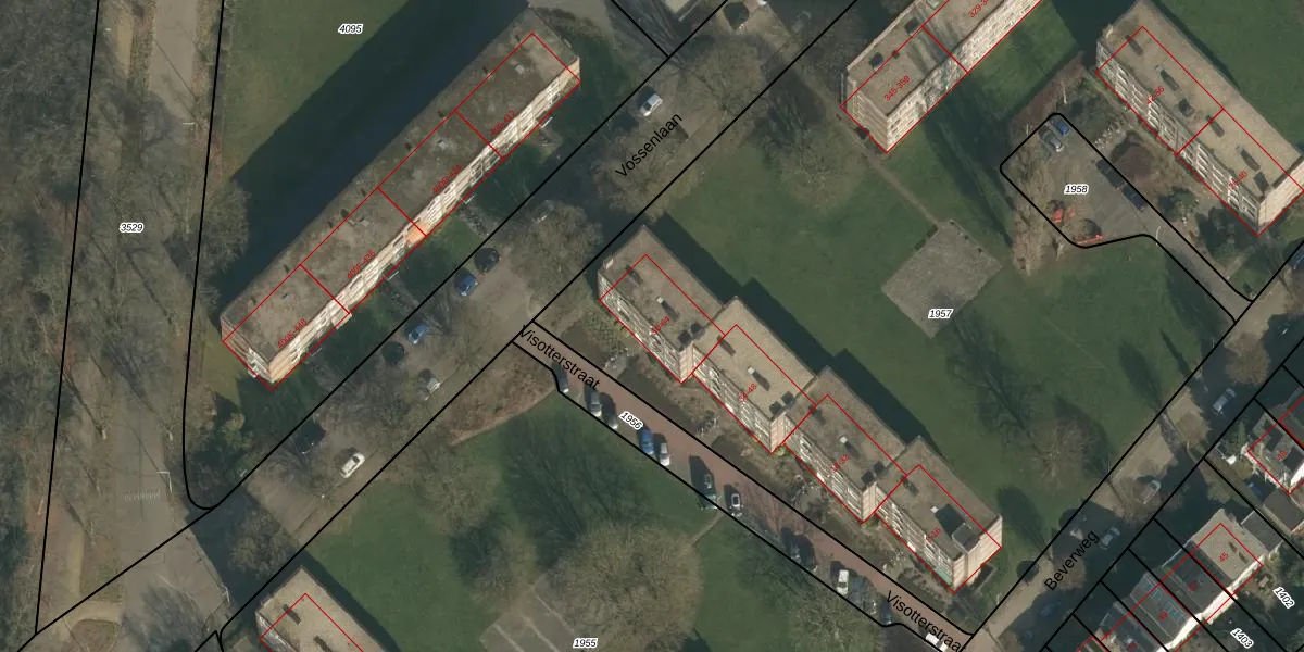 Het perceel waarop Visotterstraat 54 staat heeft een oppervlakte van 8820 m². Dit is een zeer groot perceel. De perceeloppervlakte wordt geregistreerd door het Kadaster. Gedetailleerde informatie over de maten van dit perceel kunt u vinden in het rapport Kadastrale kaart met maatvoering van Visotterstraat 54.