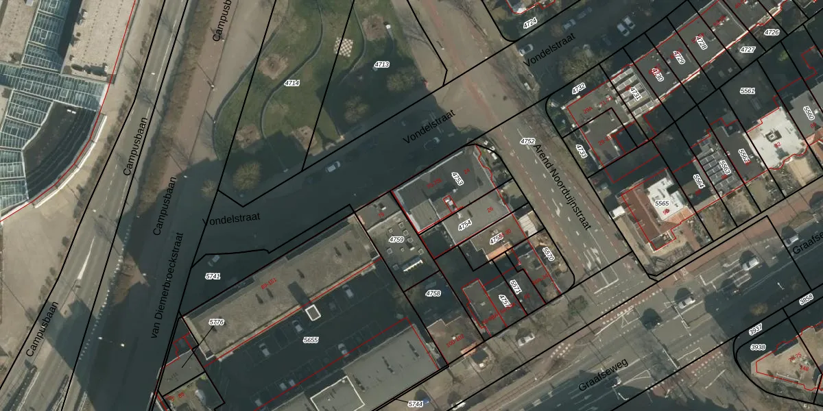 Het perceel waarop Vondelstraat 75-B staat heeft een oppervlakte van 335 m². Dit is een groot perceel. De perceeloppervlakte wordt geregistreerd door het Kadaster. Gedetailleerde informatie over de maten van dit perceel kunt u vinden in het rapport Kadastrale kaart met maatvoering van Vondelstraat 75-B.
