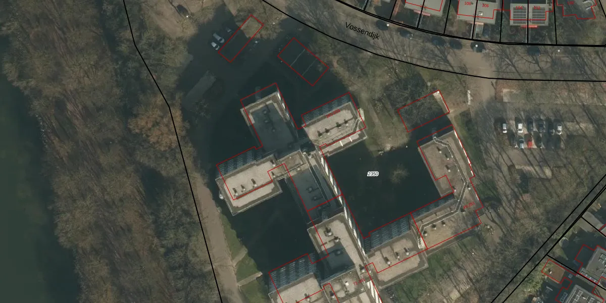 Het perceel waarop Vossendijk 167 staat heeft een oppervlakte van 1,5 ha. Dit is een zeer groot perceel. De perceeloppervlakte wordt geregistreerd door het Kadaster. Gedetailleerde informatie over de maten van dit perceel kunt u vinden in het rapport Kadastrale kaart met maatvoering van Vossendijk 167.