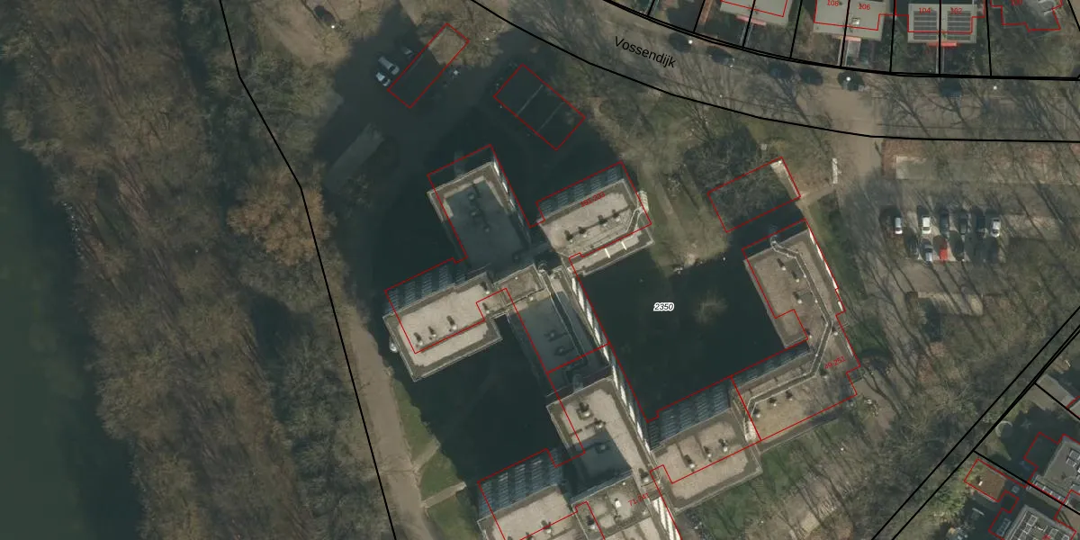Het perceel waarop Vossendijk 175 staat heeft een oppervlakte van 1,5 ha. Dit is een zeer groot perceel. De perceeloppervlakte wordt geregistreerd door het Kadaster. Gedetailleerde informatie over de maten van dit perceel kunt u vinden in het rapport Kadastrale kaart met maatvoering van Vossendijk 175.