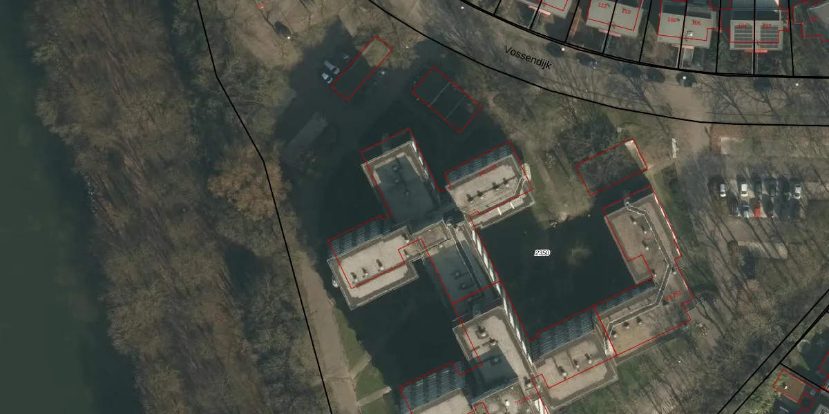 Het perceel waarop Vossendijk 231 staat heeft een oppervlakte van 1,5 ha. Dit is een zeer groot perceel. De perceeloppervlakte wordt geregistreerd door het Kadaster. Gedetailleerde informatie over de maten van dit perceel kunt u vinden in het rapport Kadastrale kaart met maatvoering van Vossendijk 231.