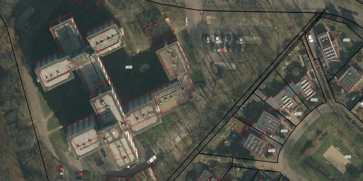 Het perceel waarop Vossendijk 61 staat heeft een oppervlakte van 1,5 ha. Dit is een zeer groot perceel. De perceeloppervlakte wordt geregistreerd door het Kadaster. Gedetailleerde informatie over de maten van dit perceel kunt u vinden in het rapport Kadastrale kaart met maatvoering van Vossendijk 61.