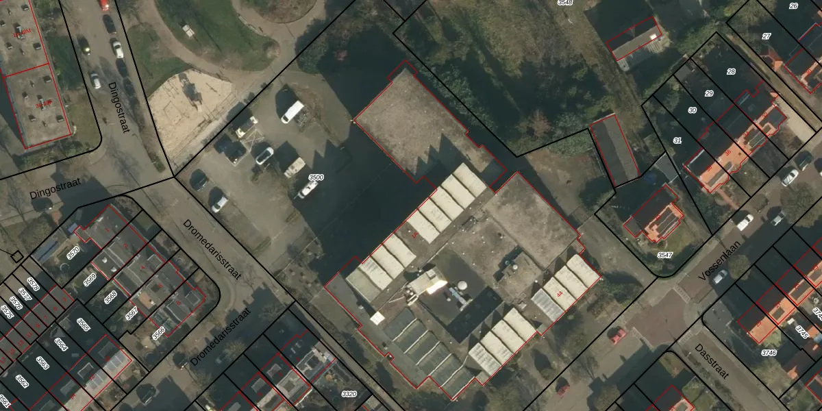 Vossenlaan 44-A-68 is gelegen op kadastraal perceel HTT02L3500. Deze kadastrale aanduiding is uniek en wordt gebruikt door het Kadaster om eigendomsrechten en andere zakelijke rechten vast te leggen. Het perceel maakt onderdeel uit van de kadastrale gemeente Hatert.