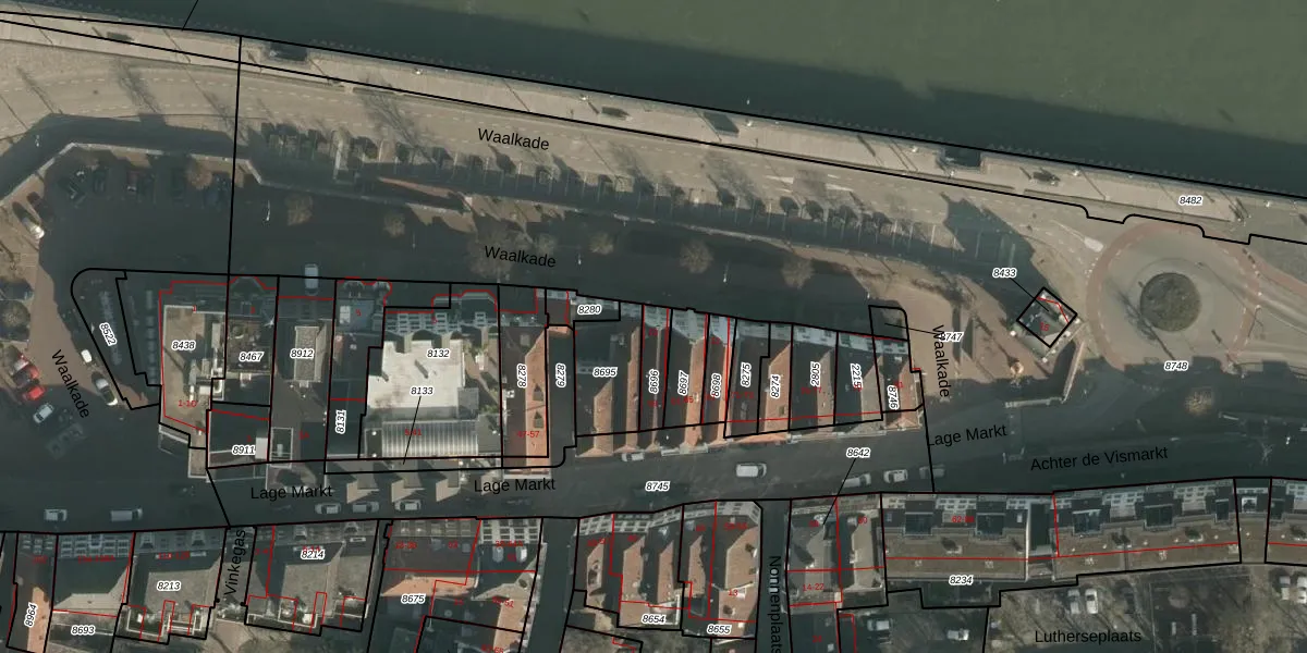 Het perceel waarop Waalkade 11 staat heeft een oppervlakte van 77 m². Dit is een klein perceel. De perceeloppervlakte wordt geregistreerd door het Kadaster. Gedetailleerde informatie over de maten van dit perceel kunt u vinden in het rapport Kadastrale kaart met maatvoering van Waalkade 11.