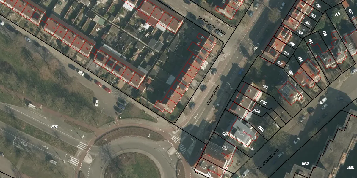Het perceel waarop Waterstraat 9 staat heeft een oppervlakte van 9630 m². Dit is een zeer groot perceel. De perceeloppervlakte wordt geregistreerd door het Kadaster. Gedetailleerde informatie over de maten van dit perceel kunt u vinden in het rapport Kadastrale kaart met maatvoering van Waterstraat 9.