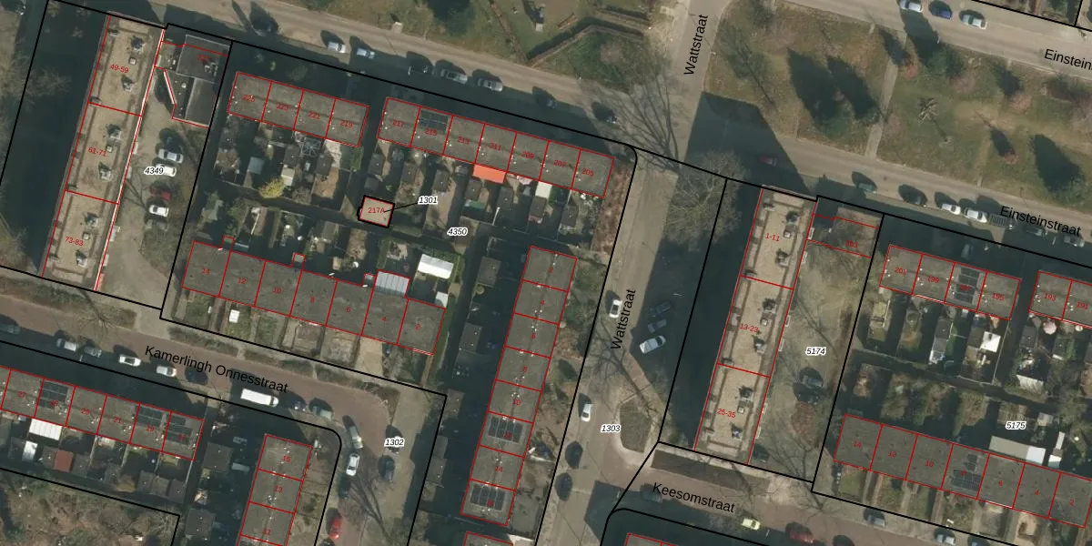 Het perceel waarop Wattstraat 2 staat heeft een oppervlakte van 5158 m². Dit is een zeer groot perceel. De perceeloppervlakte wordt geregistreerd door het Kadaster. Gedetailleerde informatie over de maten van dit perceel kunt u vinden in het rapport Kadastrale kaart met maatvoering van Wattstraat 2.