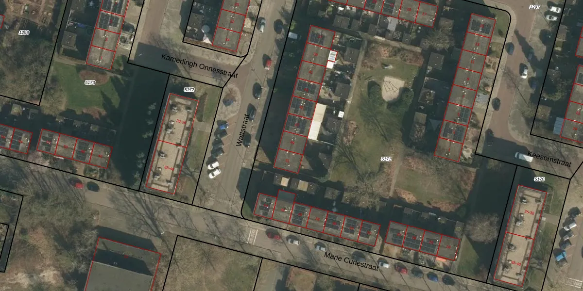 Het perceel waarop Wattstraat 49 staat heeft een oppervlakte van 7305 m². Dit is een zeer groot perceel. De perceeloppervlakte wordt geregistreerd door het Kadaster. Gedetailleerde informatie over de maten van dit perceel kunt u vinden in het rapport Kadastrale kaart met maatvoering van Wattstraat 49.