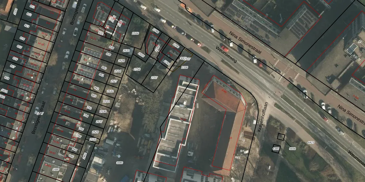 Het perceel waarop het adres ligt is NBH00-A-3080. De afkorting 'NBH00' staat voor kadastrale gemeente Neerbosch. De oppervlakte van het perceel is 3210 m². Dat is groter dan gemiddeld in Neerbosch, waar de gemiddelde perceeloppervlakte op 1111,13 m² ligt. Het grootste perceel in de kadastrale gemeente is 28,9 ha. Het kleinste perceel heeft een oppervlakte van 0 m². Op het perceel liggen in totaal 9 adressen. De huidige grenzen van het perceel zijn digitaal in de Basisregistratie Kadaster (BRK) geregistreerd op 02-03-2026.