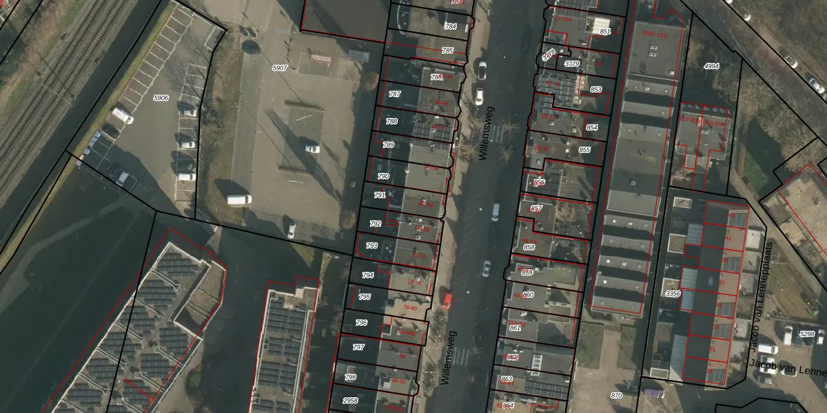 Het perceel waarop Willemsweg 64 staat heeft een oppervlakte van 125 m². Dit is een middelgroot perceel. De perceeloppervlakte wordt geregistreerd door het Kadaster. Gedetailleerde informatie over de maten van dit perceel kunt u vinden in het rapport Kadastrale kaart met maatvoering van Willemsweg 64.