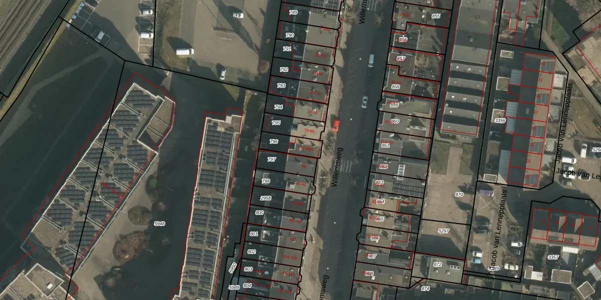 Willemsweg 82 is gelegen op kadastraal perceel HTT02M796. Deze kadastrale aanduiding is uniek en wordt gebruikt door het Kadaster om eigendomsrechten en andere zakelijke rechten vast te leggen. Het perceel maakt onderdeel uit van de kadastrale gemeente Hatert.