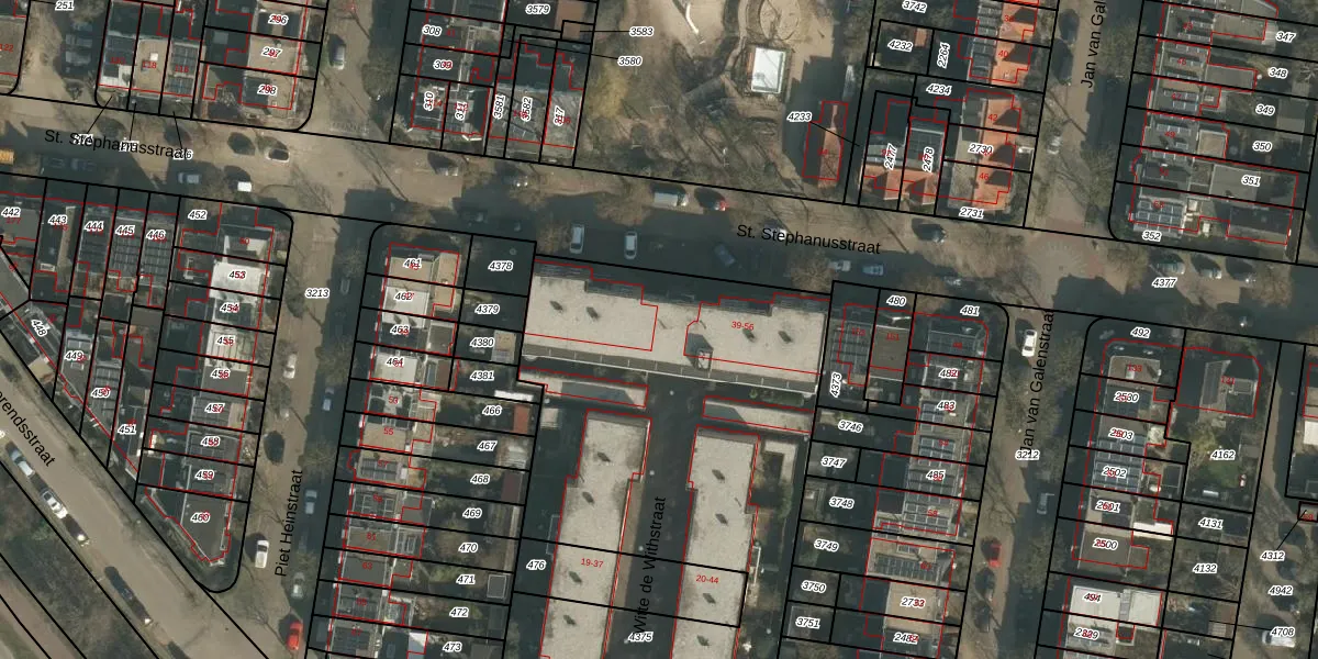 Het perceel waarop Witte de Withstraat 52 staat heeft een oppervlakte van 4476 m². Dit is een zeer groot perceel. De perceeloppervlakte wordt geregistreerd door het Kadaster. Gedetailleerde informatie over de maten van dit perceel kunt u vinden in het rapport Kadastrale kaart met maatvoering van Witte de Withstraat 52.