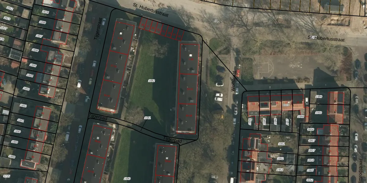 Het perceel waarop Wolfstraat 28 staat heeft een oppervlakte van 3290 m². Dit is een zeer groot perceel. De perceeloppervlakte wordt geregistreerd door het Kadaster. Gedetailleerde informatie over de maten van dit perceel kunt u vinden in het rapport Kadastrale kaart met maatvoering van Wolfstraat 28.