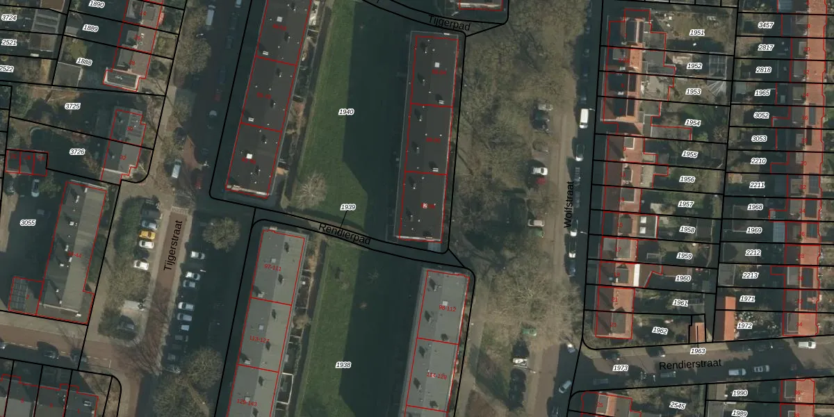 Het perceel waarop Wolfstraat 94 staat heeft een oppervlakte van 3010 m². Dit is een zeer groot perceel. De perceeloppervlakte wordt geregistreerd door het Kadaster. Gedetailleerde informatie over de maten van dit perceel kunt u vinden in het rapport Kadastrale kaart met maatvoering van Wolfstraat 94.