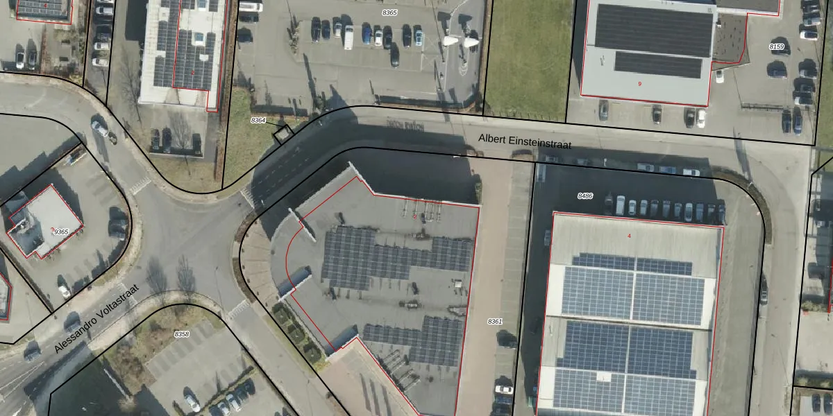 Het perceel waarop Albert Einsteinstraat 2 staat heeft een oppervlakte van 4015 m². Dit is een zeer groot perceel. De perceeloppervlakte wordt geregistreerd door het Kadaster. Gedetailleerde informatie over de maten van dit perceel kunt u vinden in het rapport Kadastrale kaart met maatvoering van Albert Einsteinstraat 2.