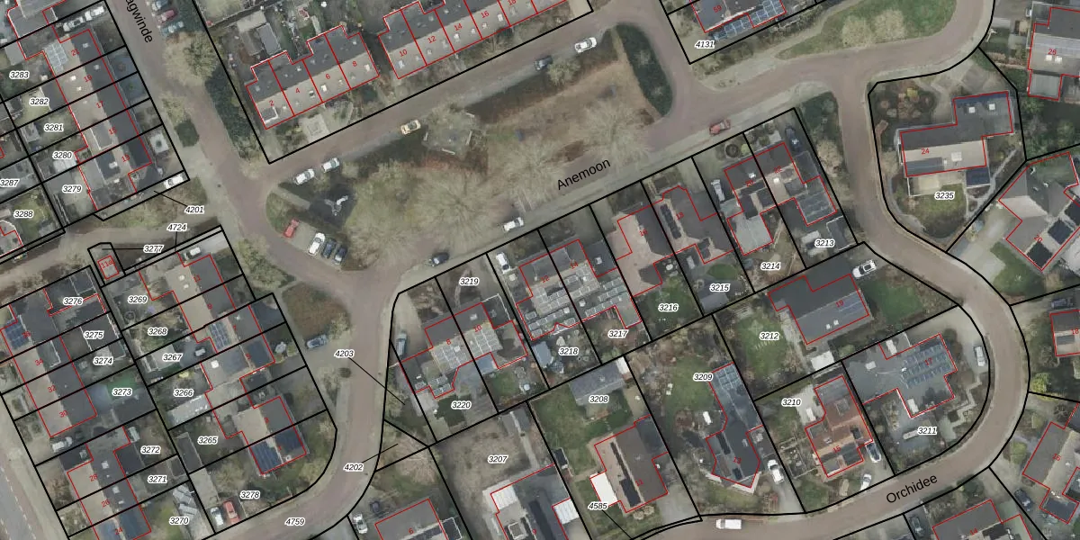Het perceel waarop Anemoon 12 staat heeft een oppervlakte van 296 m². Dit is een middelgroot perceel. De perceeloppervlakte wordt geregistreerd door het Kadaster. Gedetailleerde informatie over de maten van dit perceel kunt u vinden in het rapport Kadastrale kaart met maatvoering van Anemoon 12.