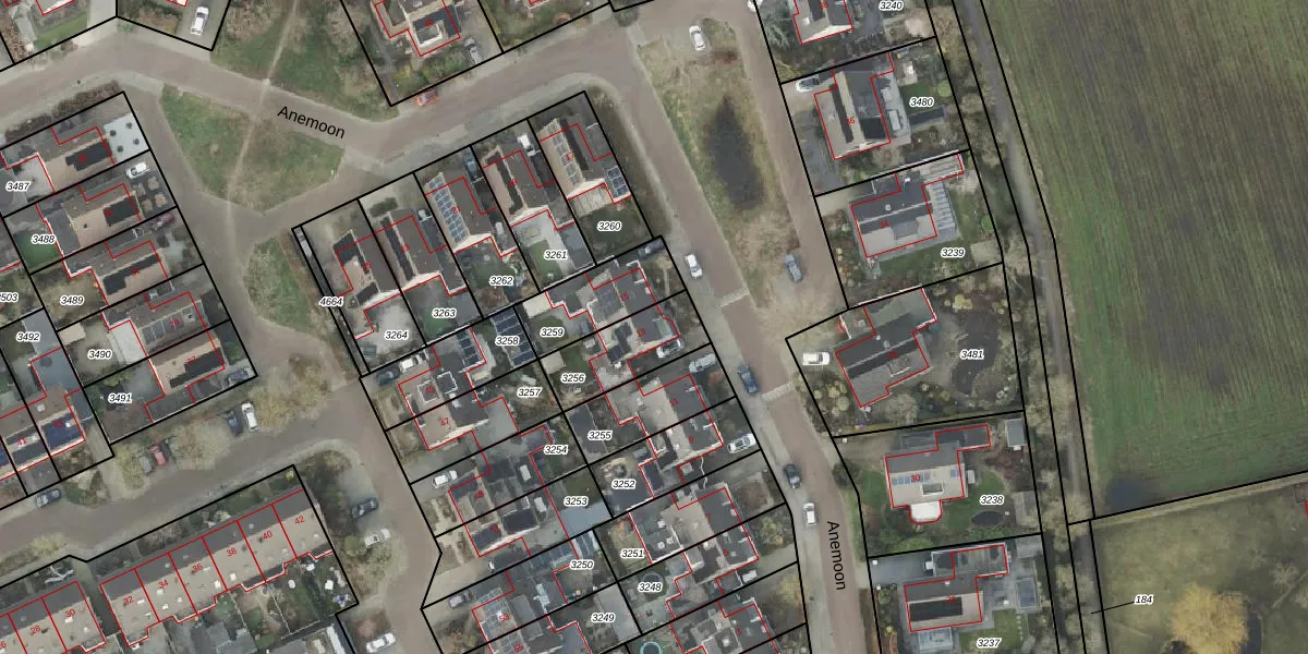 Het perceel waarop Anemoon 13 staat heeft een oppervlakte van 225 m². Dit is een middelgroot perceel. De perceeloppervlakte wordt geregistreerd door het Kadaster. Gedetailleerde informatie over de maten van dit perceel kunt u vinden in het rapport Kadastrale kaart met maatvoering van Anemoon 13.