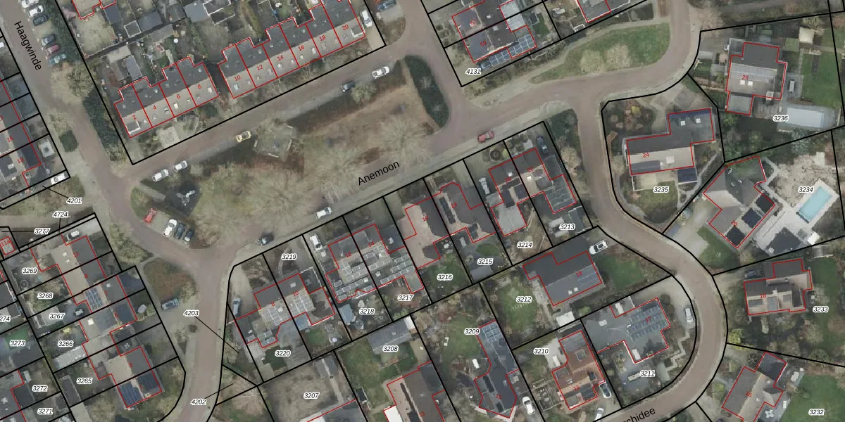 Het perceel waarop Anemoon 16 staat heeft een oppervlakte van 293 m². Dit is een middelgroot perceel. De perceeloppervlakte wordt geregistreerd door het Kadaster. Gedetailleerde informatie over de maten van dit perceel kunt u vinden in het rapport Kadastrale kaart met maatvoering van Anemoon 16.