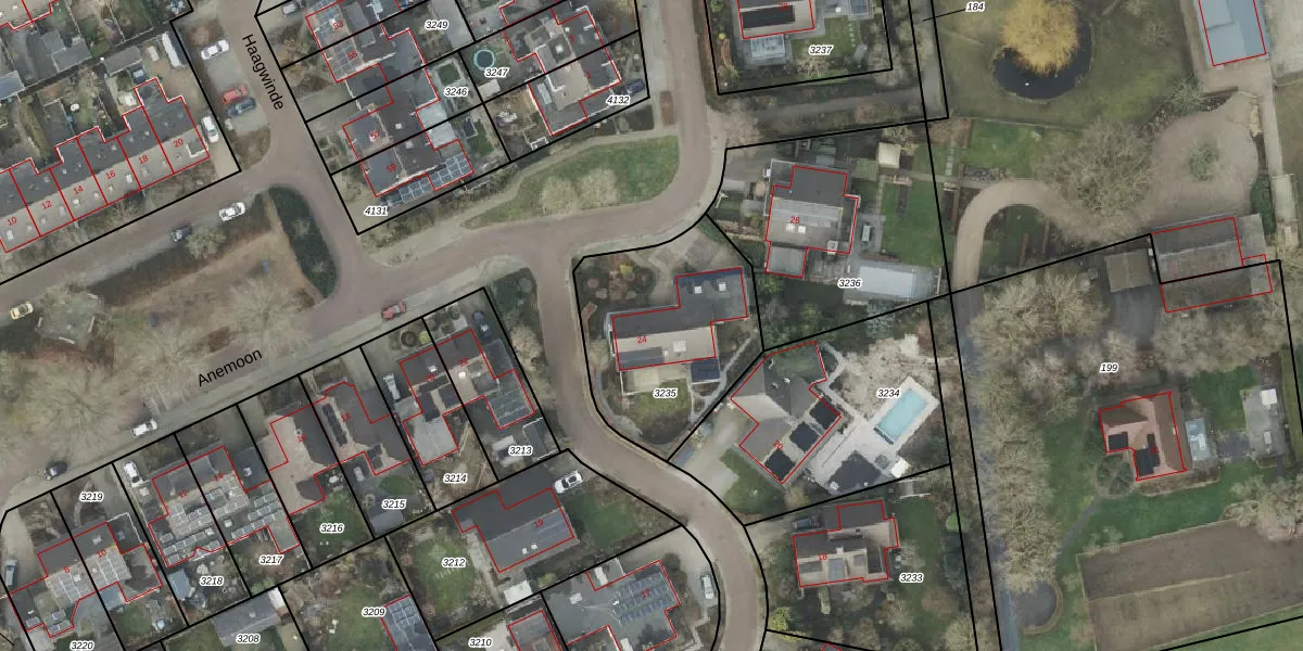 Het perceel waarop Anemoon 24 staat heeft een oppervlakte van 733 m². Dit is een groot perceel. De perceeloppervlakte wordt geregistreerd door het Kadaster. Gedetailleerde informatie over de maten van dit perceel kunt u vinden in het rapport Kadastrale kaart met maatvoering van Anemoon 24.