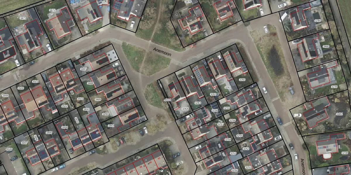 Het perceel waarop Anemoon 25 staat heeft een oppervlakte van 240 m². Dit is een middelgroot perceel. De perceeloppervlakte wordt geregistreerd door het Kadaster. Gedetailleerde informatie over de maten van dit perceel kunt u vinden in het rapport Kadastrale kaart met maatvoering van Anemoon 25.