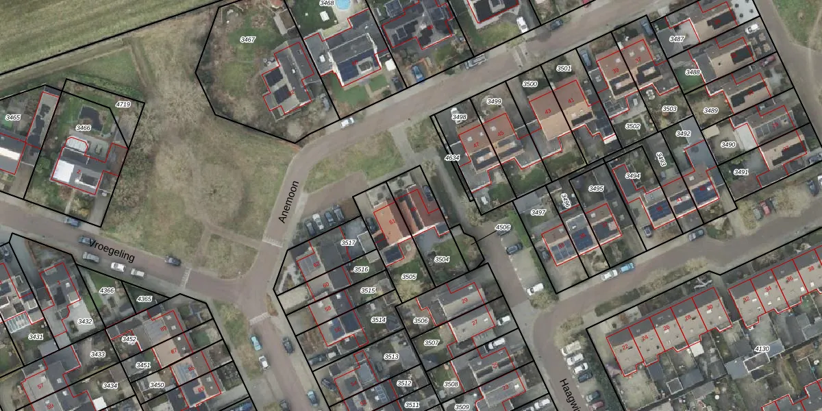 Gebruik de zoekbalk of klik op een perceel voor informatie over de adressen binnen dit perceel.