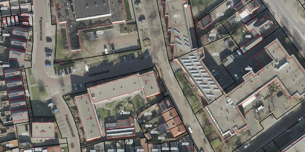 Het perceel waarop Azaleastraat 4 staat heeft een oppervlakte van 2156 m². Dit is een zeer groot perceel. De perceeloppervlakte wordt geregistreerd door het Kadaster. Gedetailleerde informatie over de maten van dit perceel kunt u vinden in het rapport Kadastrale kaart met maatvoering van Azaleastraat 4.