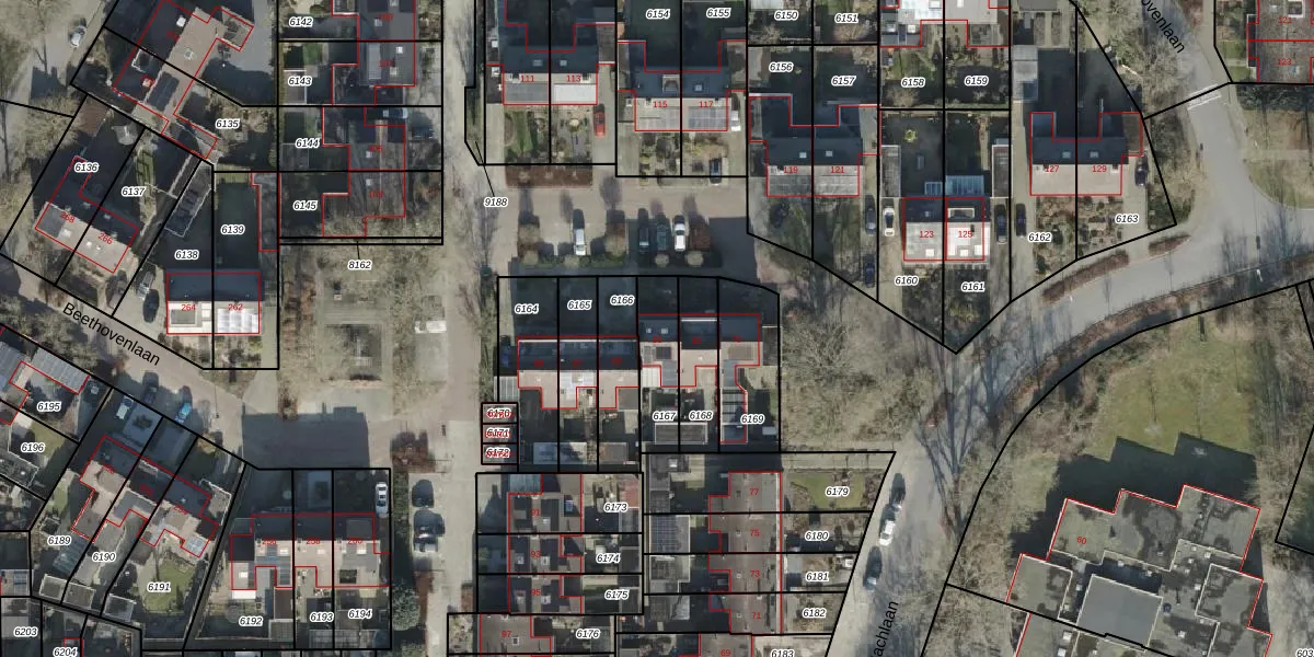 Het perceel waarop Bachlaan 83 staat heeft een oppervlakte van 164 m². Dit is een middelgroot perceel. De perceeloppervlakte wordt geregistreerd door het Kadaster. Gedetailleerde informatie over de maten van dit perceel kunt u vinden in het rapport Kadastrale kaart met maatvoering van Bachlaan 83.