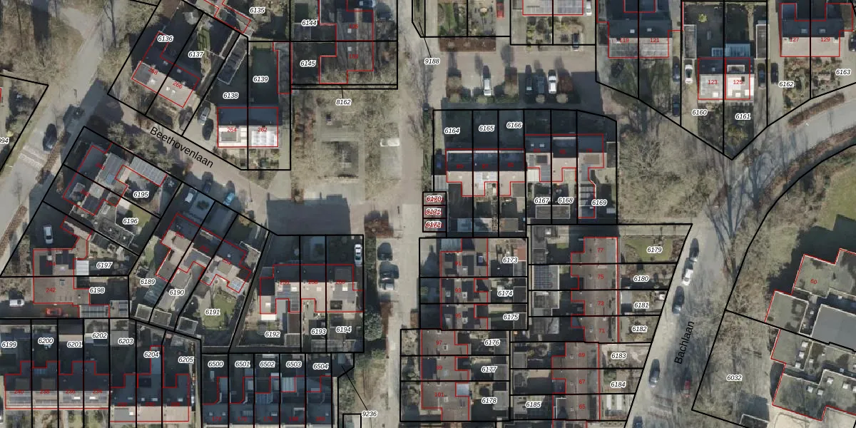 Het perceel waarop Bachlaan 89-B01 staat heeft een oppervlakte van 17 m². Dit is een klein perceel. De perceeloppervlakte wordt geregistreerd door het Kadaster. Gedetailleerde informatie over de maten van dit perceel kunt u vinden in het rapport Kadastrale kaart met maatvoering van Bachlaan 89-B01.