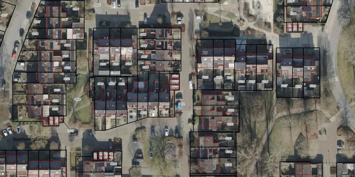 Beethovenlaan 184-B03 is gelegen op kadastraal perceel HLD01N6518. Deze kadastrale aanduiding is uniek en wordt gebruikt door het Kadaster om eigendomsrechten en andere zakelijke rechten vast te leggen. Het perceel maakt onderdeel uit van de kadastrale gemeente Hellendoorn.