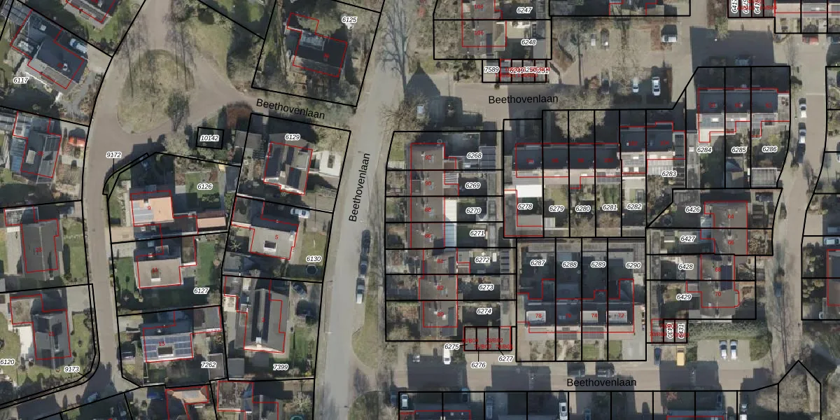 Het perceel waarop Beethovenlaan 88 staat heeft een oppervlakte van 173 m². Dit is een middelgroot perceel. De perceeloppervlakte wordt geregistreerd door het Kadaster. Gedetailleerde informatie over de maten van dit perceel kunt u vinden in het rapport Kadastrale kaart met maatvoering van Beethovenlaan 88.
