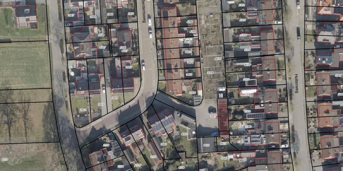 Bentertsweg 55 is gelegen op kadastraal perceel HLD01L3326. Deze kadastrale aanduiding is uniek en wordt gebruikt door het Kadaster om eigendomsrechten en andere zakelijke rechten vast te leggen. Het perceel maakt onderdeel uit van de kadastrale gemeente Hellendoorn.