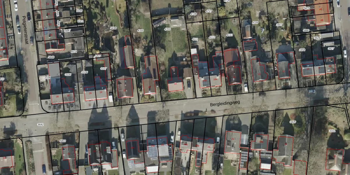 Het perceel waarop Bergleidingweg 18 staat heeft een oppervlakte van 1288 m². Dit is een zeer groot perceel. De perceeloppervlakte wordt geregistreerd door het Kadaster. Gedetailleerde informatie over de maten van dit perceel kunt u vinden in het rapport Kadastrale kaart met maatvoering van Bergleidingweg 18.
