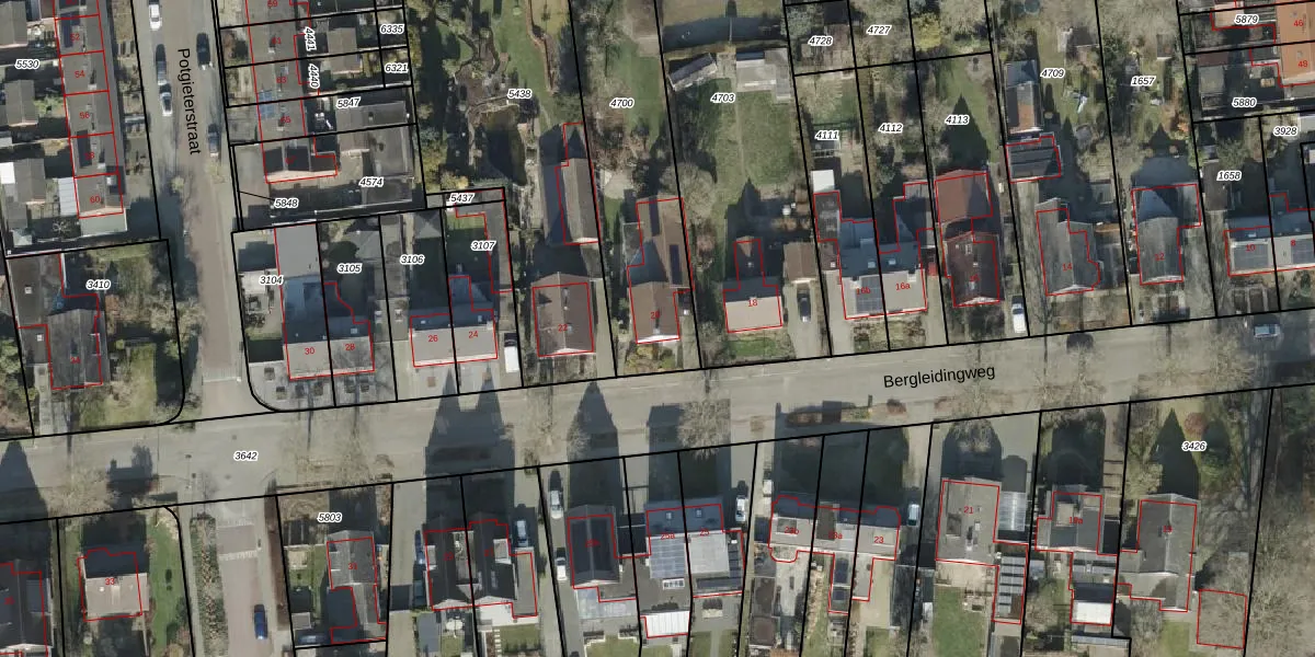 Het perceel waarop Bergleidingweg 20 staat heeft een oppervlakte van 855 m². Dit is een groot perceel. De perceeloppervlakte wordt geregistreerd door het Kadaster. Gedetailleerde informatie over de maten van dit perceel kunt u vinden in het rapport Kadastrale kaart met maatvoering van Bergleidingweg 20.
