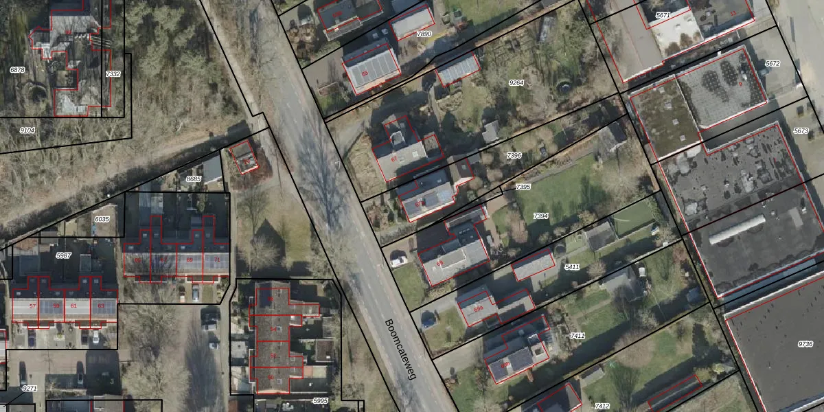 Het perceel waarop Boomcateweg 67-a staat heeft een oppervlakte van 642 m². Dit is een groot perceel. De perceeloppervlakte wordt geregistreerd door het Kadaster. Gedetailleerde informatie over de maten van dit perceel kunt u vinden in het rapport Kadastrale kaart met maatvoering van Boomcateweg 67-a.