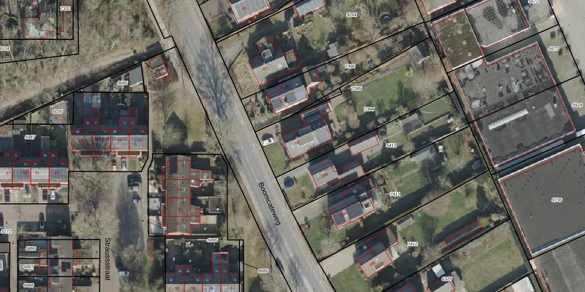 Het perceel waarop Boomcateweg 69 staat heeft een oppervlakte van 1214 m². Dit is een zeer groot perceel. De perceeloppervlakte wordt geregistreerd door het Kadaster. Gedetailleerde informatie over de maten van dit perceel kunt u vinden in het rapport Kadastrale kaart met maatvoering van Boomcateweg 69.