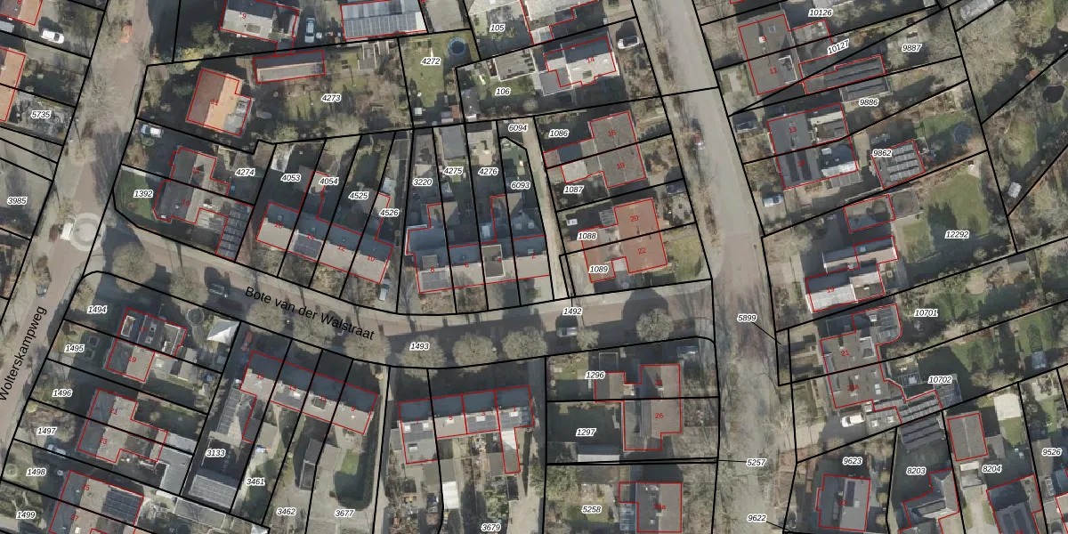 Bote van der Walstraat 2 is gelegen op kadastraal perceel HLD01L6093. Deze kadastrale aanduiding is uniek en wordt gebruikt door het Kadaster om eigendomsrechten en andere zakelijke rechten vast te leggen. Het perceel maakt onderdeel uit van de kadastrale gemeente Hellendoorn.