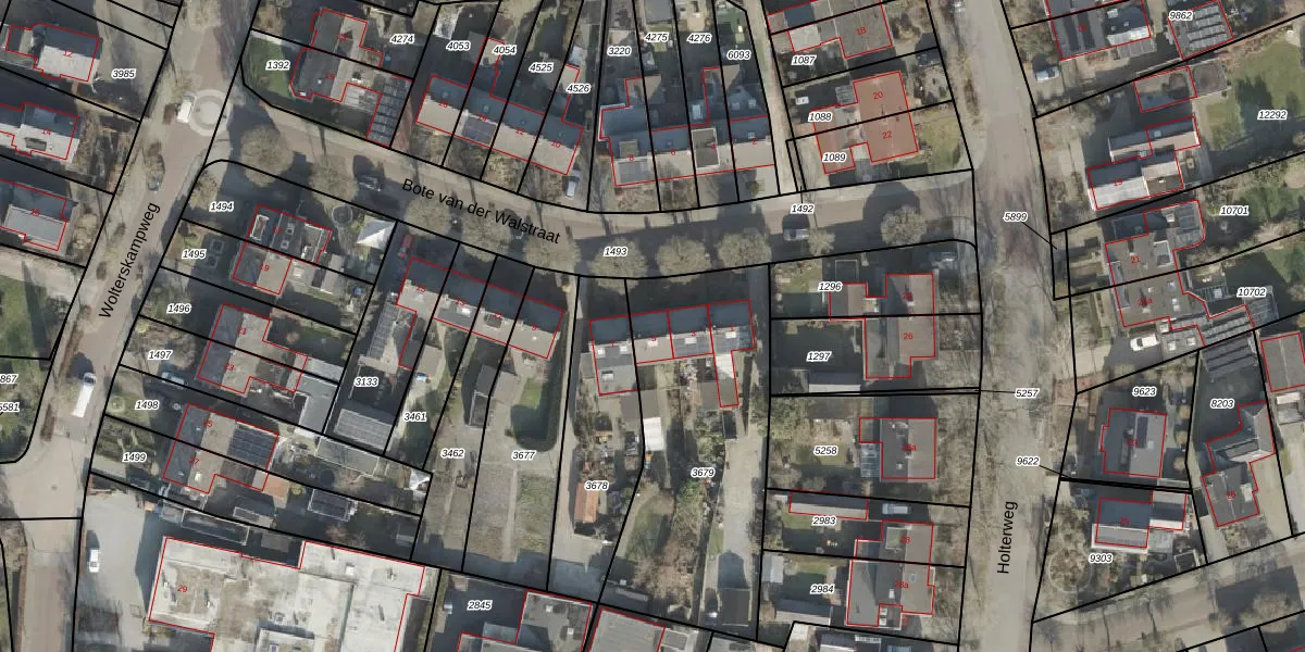 Bote van der Walstraat 5 is gelegen op kadastraal perceel HLD01L3679. Deze kadastrale aanduiding is uniek en wordt gebruikt door het Kadaster om eigendomsrechten en andere zakelijke rechten vast te leggen. Het perceel maakt onderdeel uit van de kadastrale gemeente Hellendoorn.