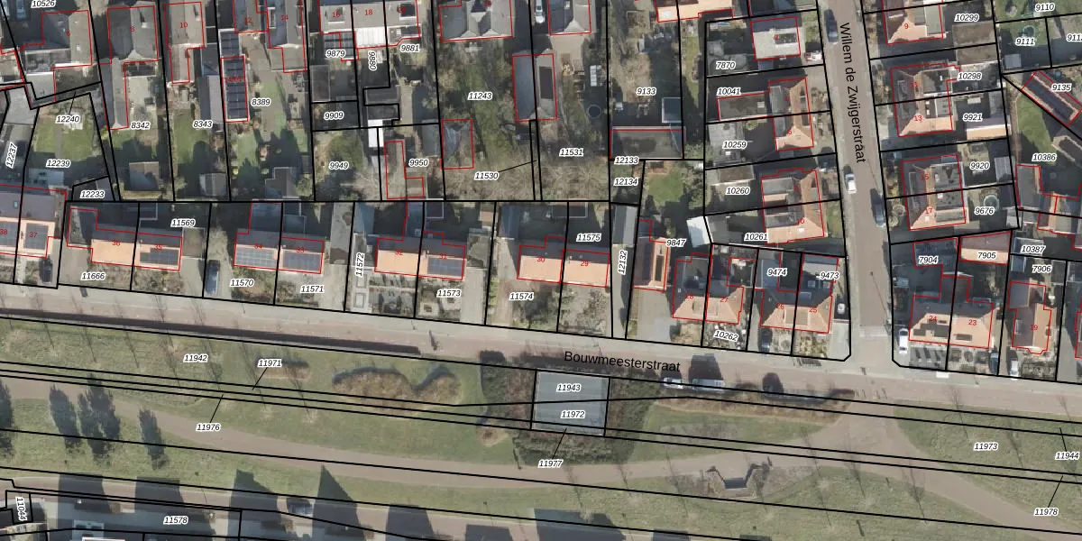 Gebruik de zoekbalk of klik op een perceel voor informatie over de adressen binnen dit perceel.