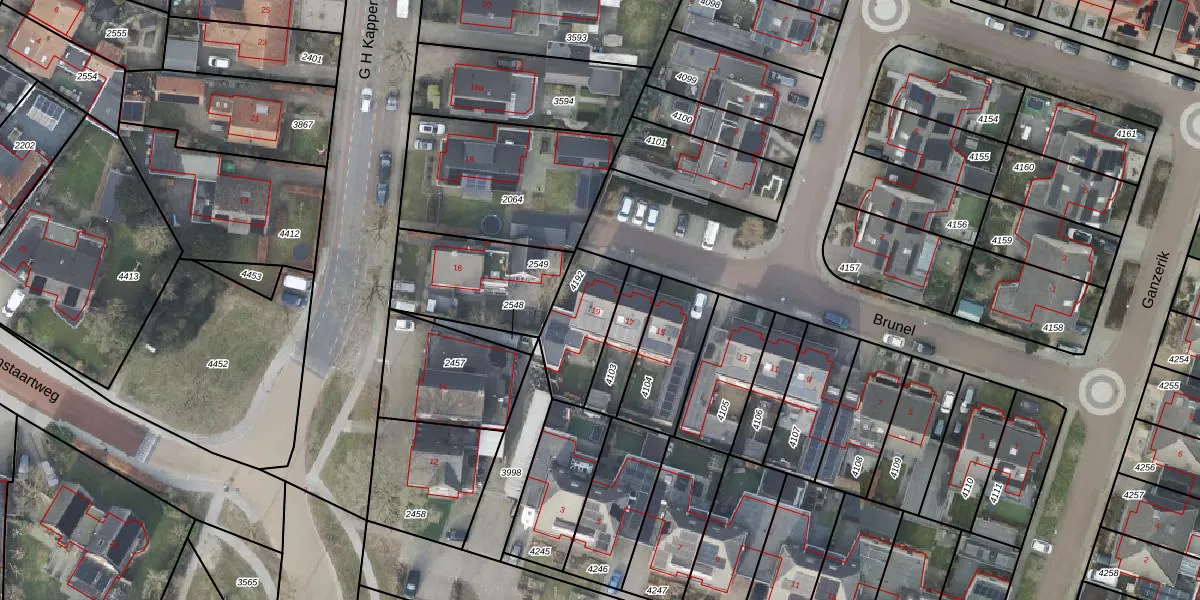 Het perceel waarop Brunel 19 staat heeft een oppervlakte van 234 m². Dit is een middelgroot perceel. De perceeloppervlakte wordt geregistreerd door het Kadaster. Gedetailleerde informatie over de maten van dit perceel kunt u vinden in het rapport Kadastrale kaart met maatvoering van Brunel 19.