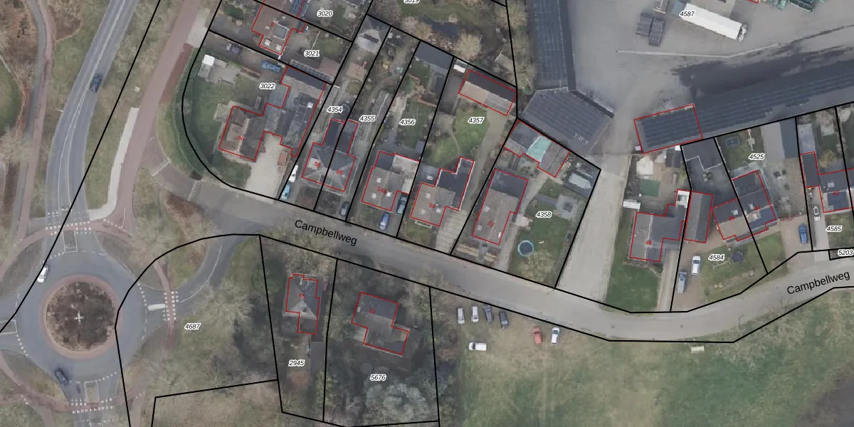 Gebruik de zoekbalk of klik op een perceel voor informatie over de adressen binnen dit perceel.
