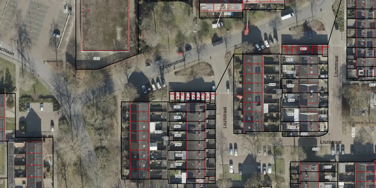 Het perceel waarop Chopinstraat 38-B27 staat heeft een oppervlakte van 15 m². Dit is een klein perceel. De perceeloppervlakte wordt geregistreerd door het Kadaster. Gedetailleerde informatie over de maten van dit perceel kunt u vinden in het rapport Kadastrale kaart met maatvoering van Chopinstraat 38-B27.