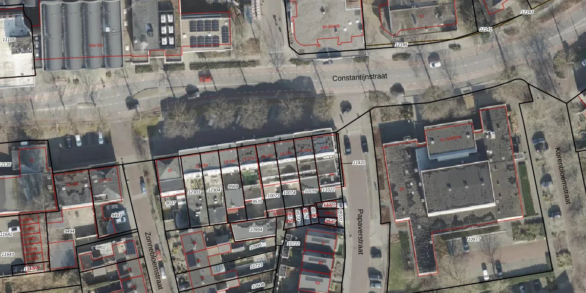 Het perceel waarop Constantijnstraat 13-a staat heeft een oppervlakte van 152 m². Dit is een middelgroot perceel. De perceeloppervlakte wordt geregistreerd door het Kadaster. Gedetailleerde informatie over de maten van dit perceel kunt u vinden in het rapport Kadastrale kaart met maatvoering van Constantijnstraat 13-a.