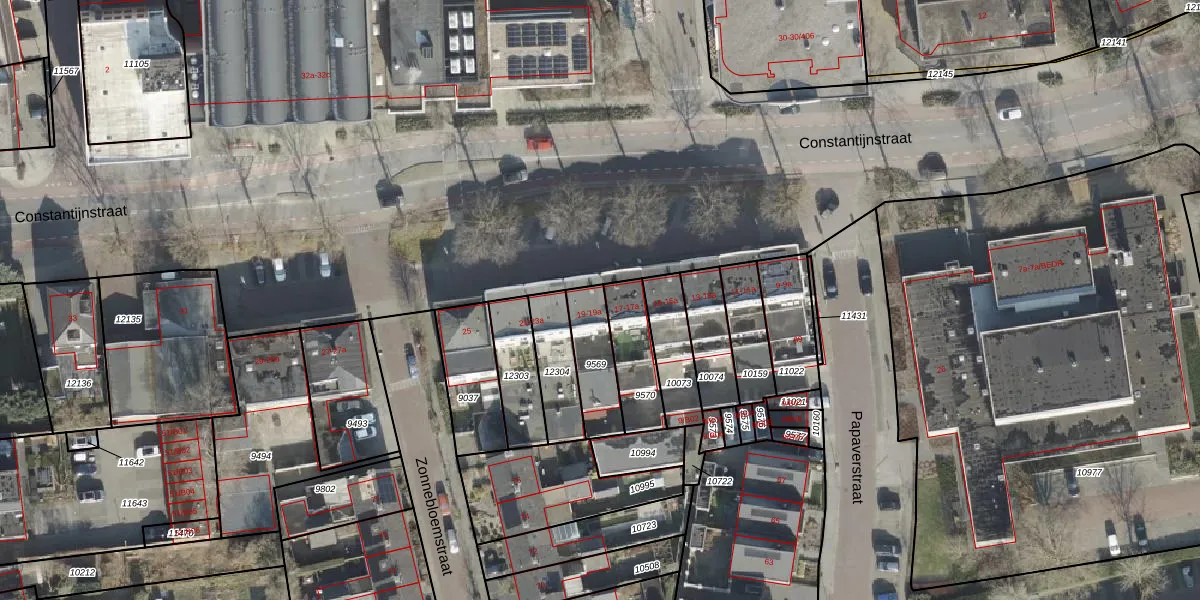 Het perceel waarop Constantijnstraat 19-a staat heeft een oppervlakte van 164 m². Dit is een middelgroot perceel. De perceeloppervlakte wordt geregistreerd door het Kadaster. Gedetailleerde informatie over de maten van dit perceel kunt u vinden in het rapport Kadastrale kaart met maatvoering van Constantijnstraat 19-a.