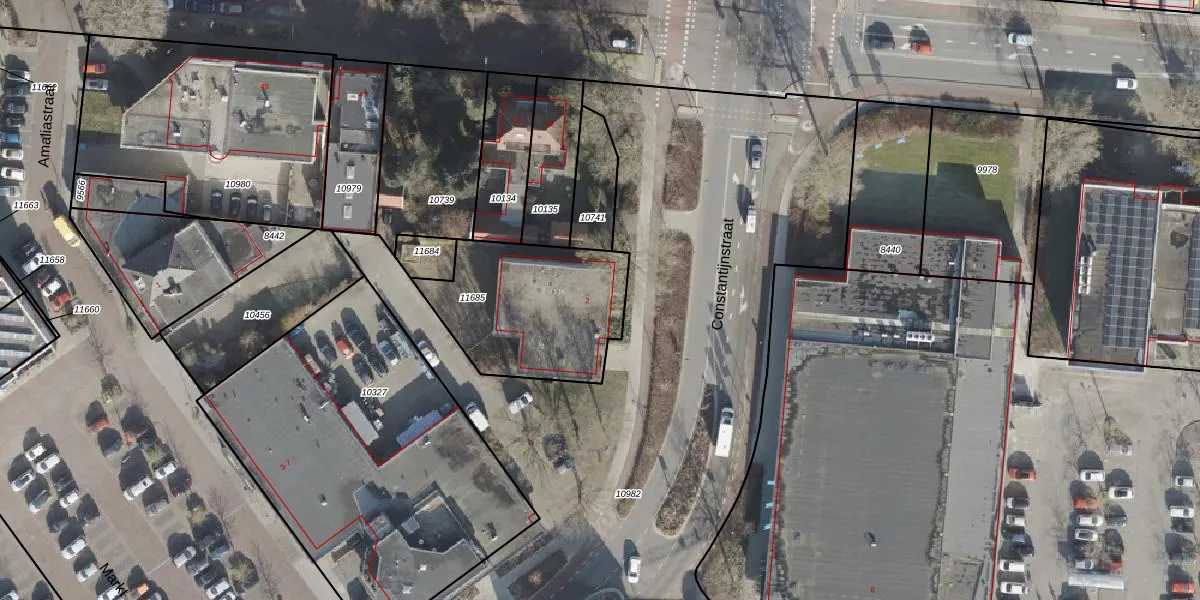 Het perceel waarop Constantijnstraat 2 staat heeft een oppervlakte van 626 m². Dit is een groot perceel. De perceeloppervlakte wordt geregistreerd door het Kadaster. Gedetailleerde informatie over de maten van dit perceel kunt u vinden in het rapport Kadastrale kaart met maatvoering van Constantijnstraat 2.