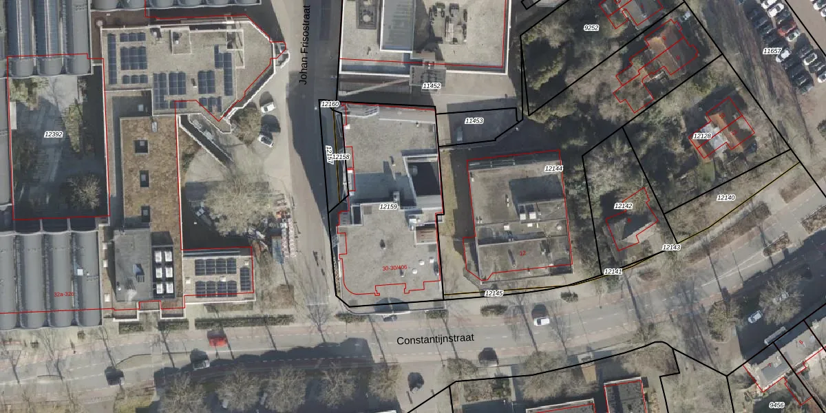 Het perceel waarop Constantijnstraat 30-406 staat heeft een oppervlakte van 1177 m². Dit is een zeer groot perceel. De perceeloppervlakte wordt geregistreerd door het Kadaster. Gedetailleerde informatie over de maten van dit perceel kunt u vinden in het rapport Kadastrale kaart met maatvoering van Constantijnstraat 30-406.